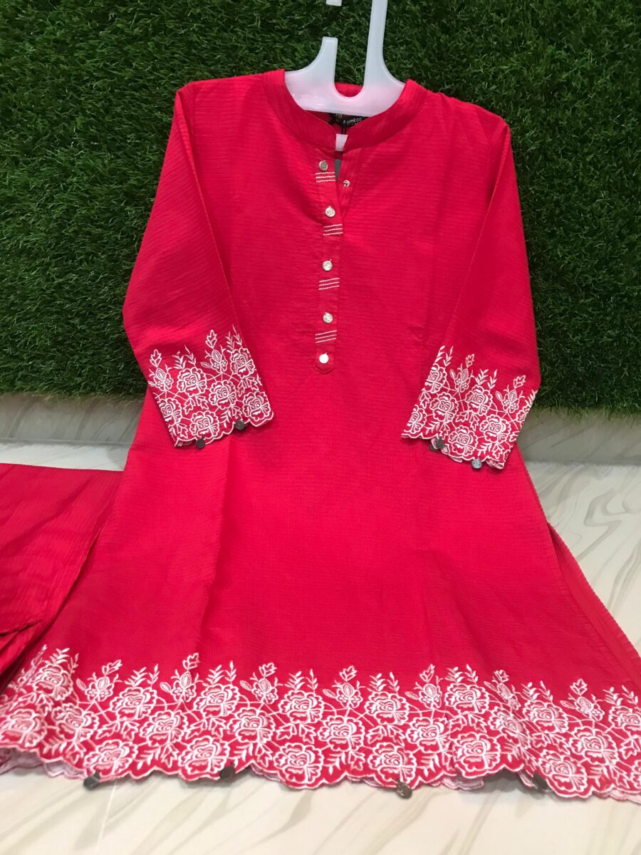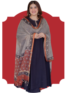 Long cord set with handblock prints on the body and mirror work