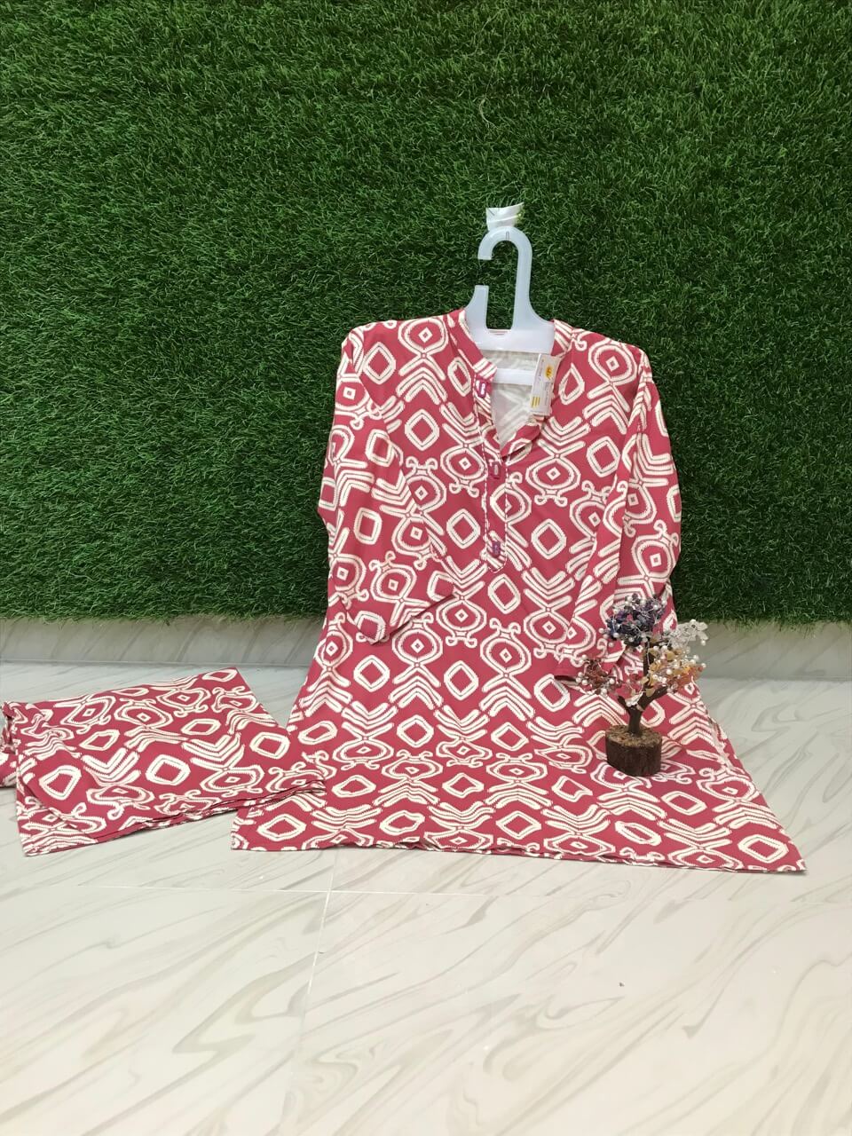 Long cord set with straight cut and printed pants