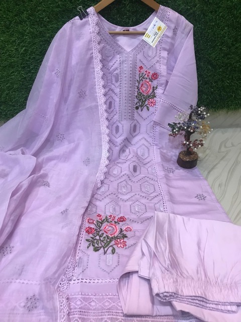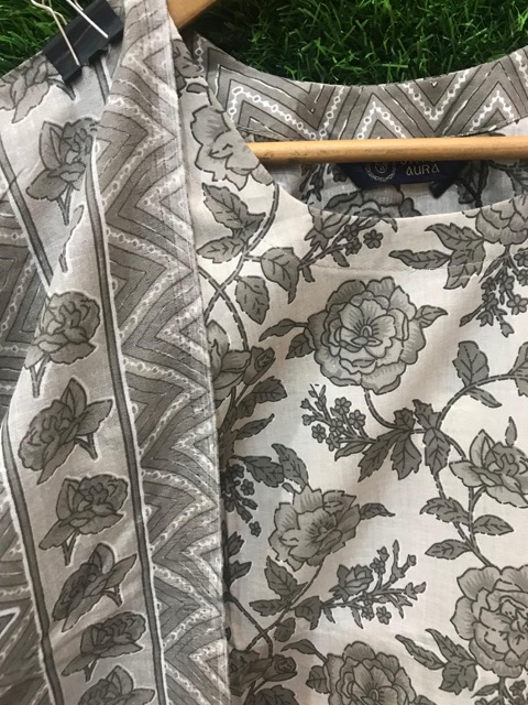 Light & Dark grey flower printed cotton salwar with cotton pants and pure cotton dupatta