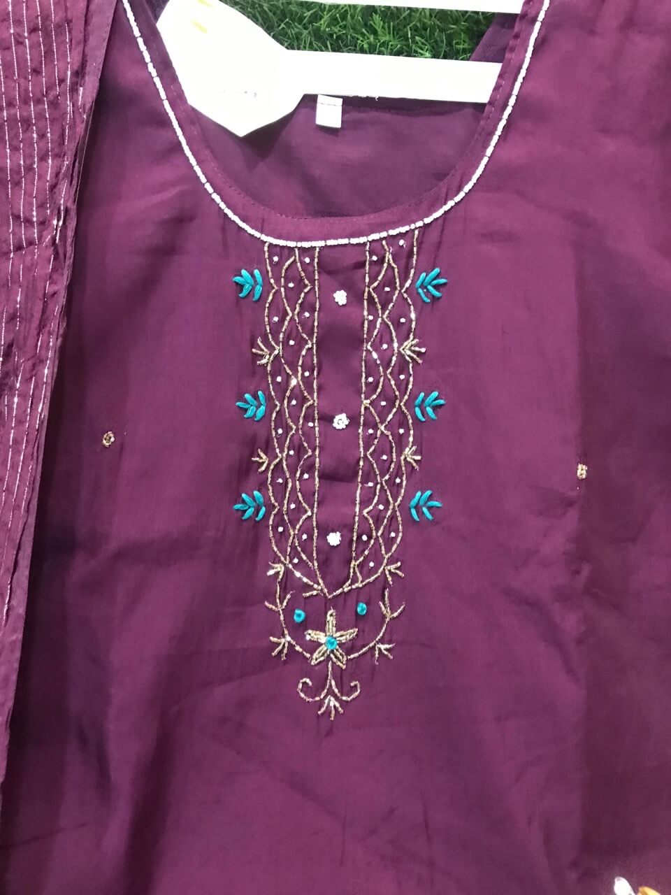 Handwork V neck salwar with motifs