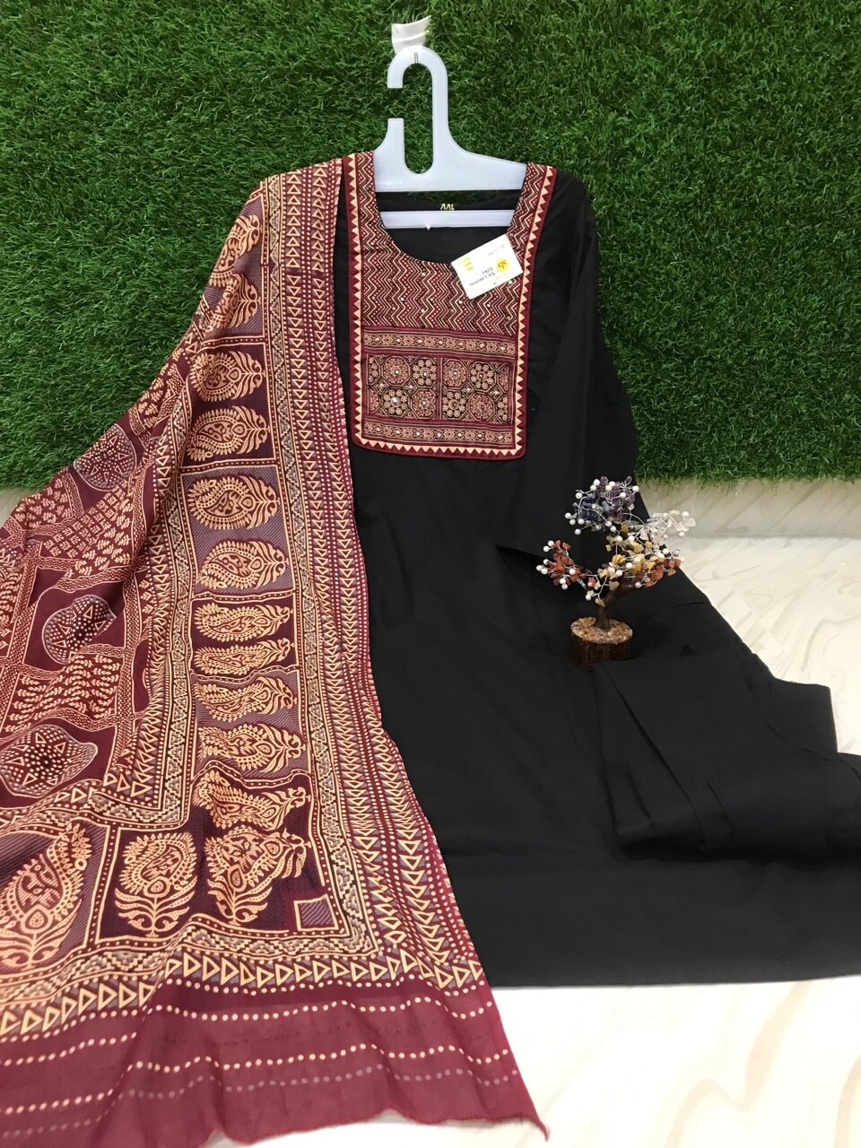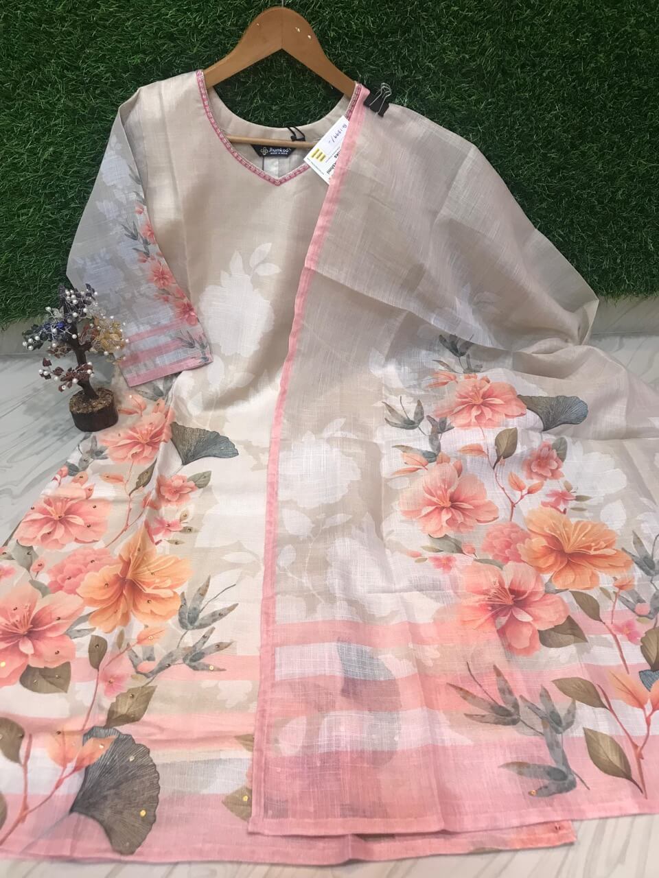 Linen salwar with chinese collar and digital floral prints on the body and plain embroidered dupatta
